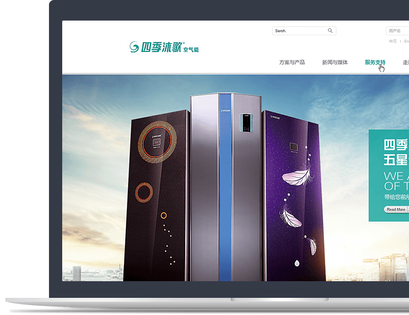官網著力表現(xiàn)四季沐歌綠色能源產業(yè)的蓬勃朝氣和社會責任,呈現(xiàn)出科技感、現(xiàn)代感