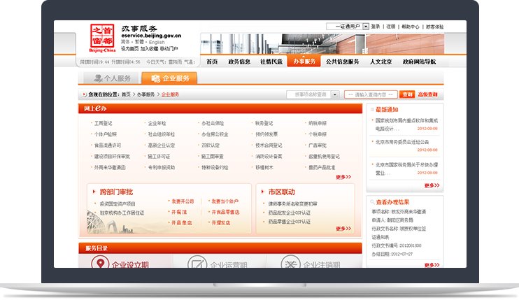 首都之窗辦事服務頻道作為政府門戶網站最重要、最常用的平臺,信息量大,用戶需求復雜,新鴻儒精密梳理用戶訪問邏輯,將網上辦事流程實現最簡化,極大的方便了群眾。首都之窗至今連續(xù)保持政府網站評比排名第一。