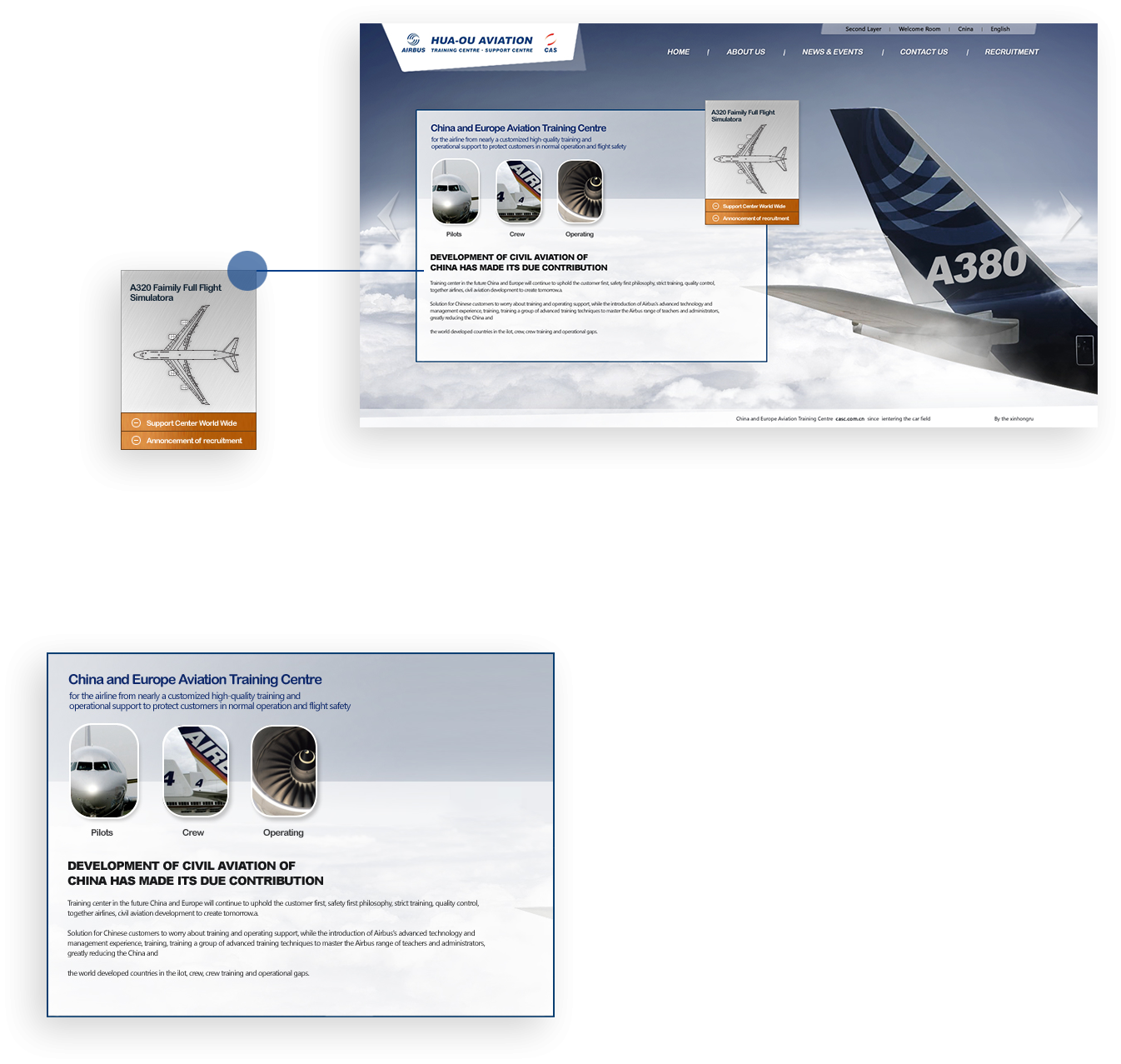 平臺以A380代表性圖片作為主視覺焦點,有效傳達(dá)自身產(chǎn)品特征。并根據(jù)機(jī)長交流學(xué)習(xí)需求,定制開發(fā)平臺功能。