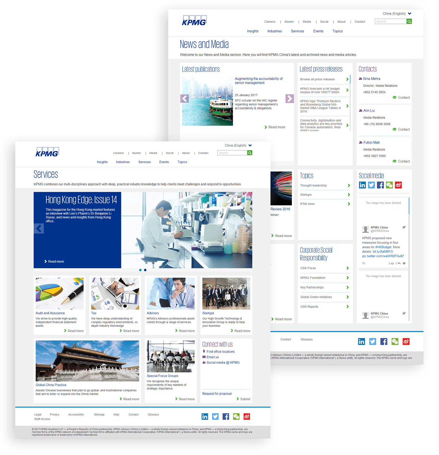 新鴻儒結(jié)合會計行業(yè)做事嚴(yán)謹(jǐn)、信息明了的特點,為畢馬威打造以“信息”為主體的品牌官網(wǎng)