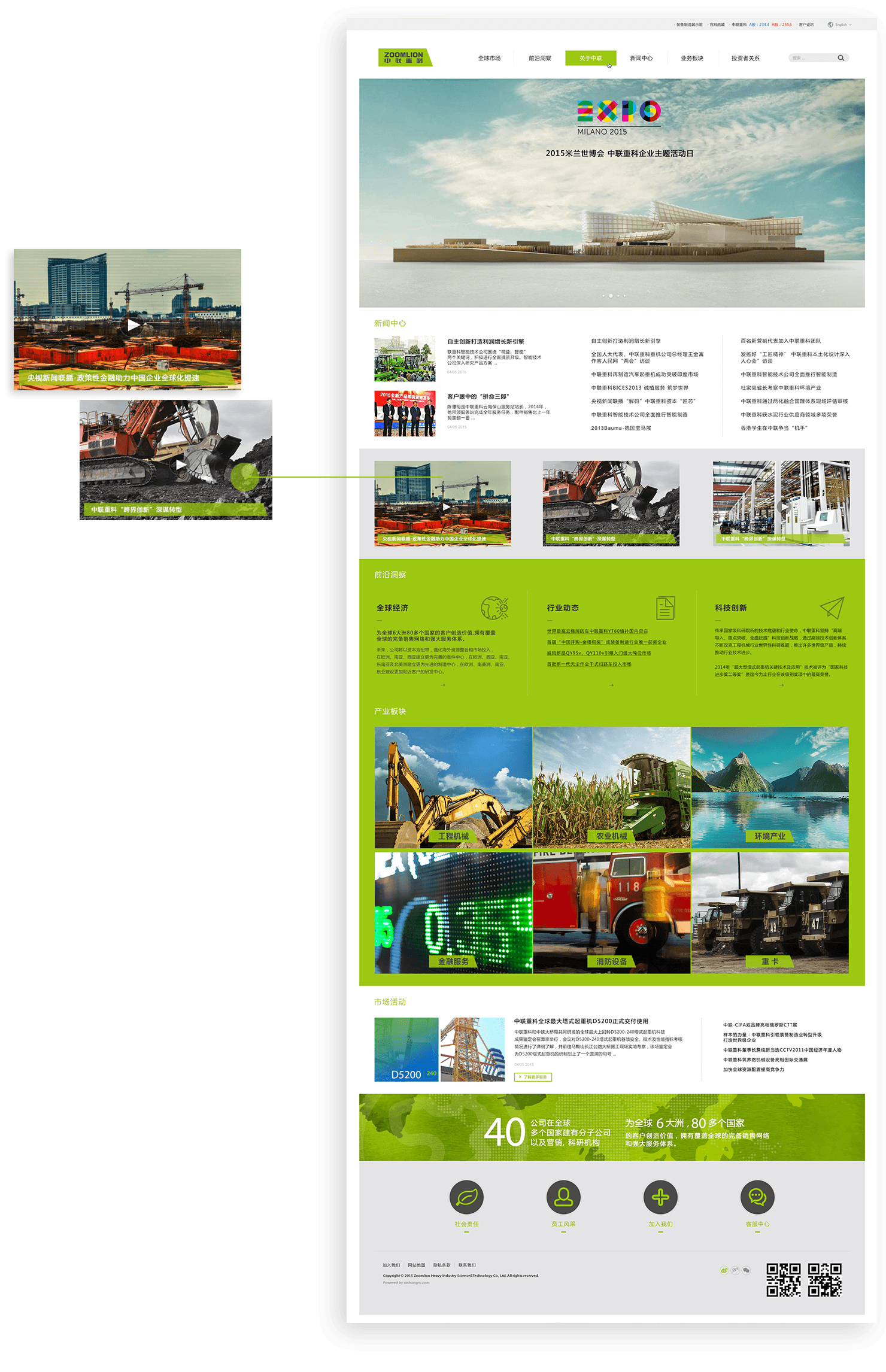 新鴻儒為中聯(lián)重科打造現(xiàn)代化、科技感的集團(tuán)官網(wǎng)——以國際流行的扁平化和色塊方格的長(zhǎng)布局為核心,通過錯(cuò)落排版的圖片 色塊相對(duì)均勻地吸引用戶的注意力,并以扁平化的處理方式讓每個(gè)元素更加易用、易辨識(shí),突出核心內(nèi)容。