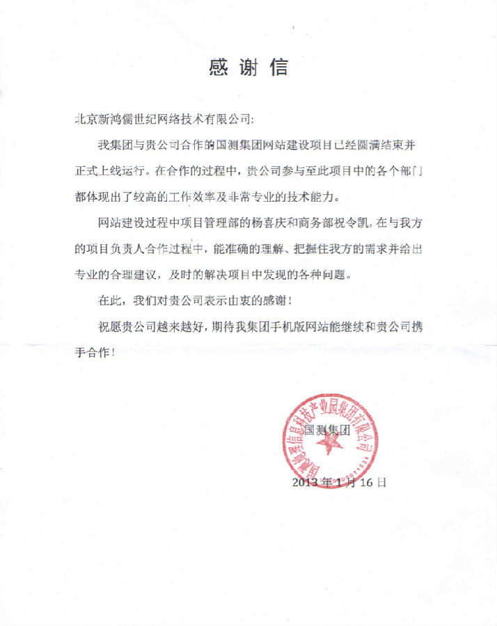 我們希望傾盡全力為客戶贏得價值,為其打造屬于自己的網(wǎng)絡(luò)品牌形象,幫助國測集團實現(xiàn)“打造百年企業(yè),鑄造輝煌人生”的企業(yè)目標!