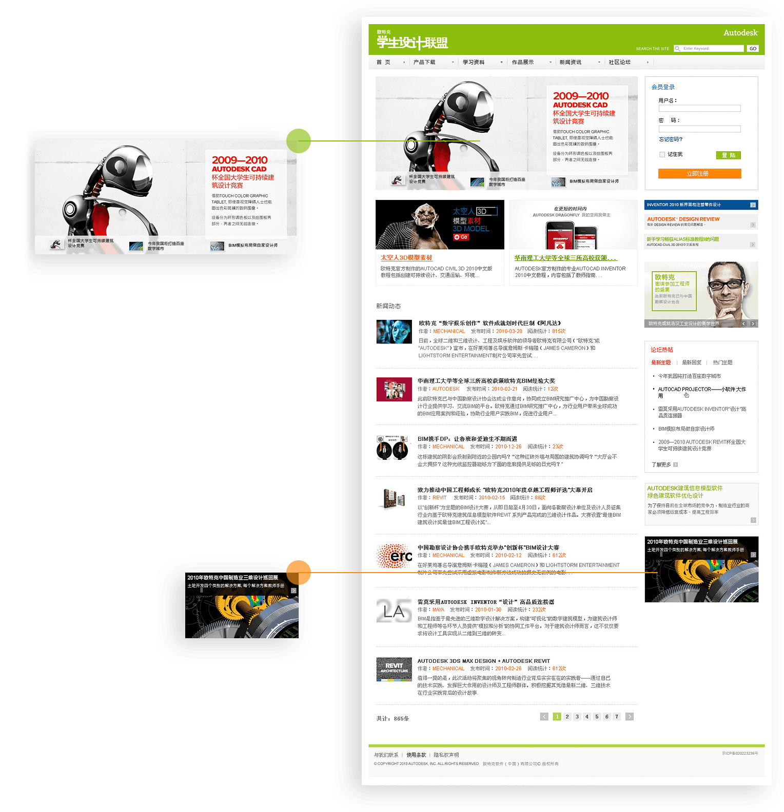 歐特克學生設計聯盟網站以平臺運營思路為核心,設置多個主題活動、營銷互動功能模