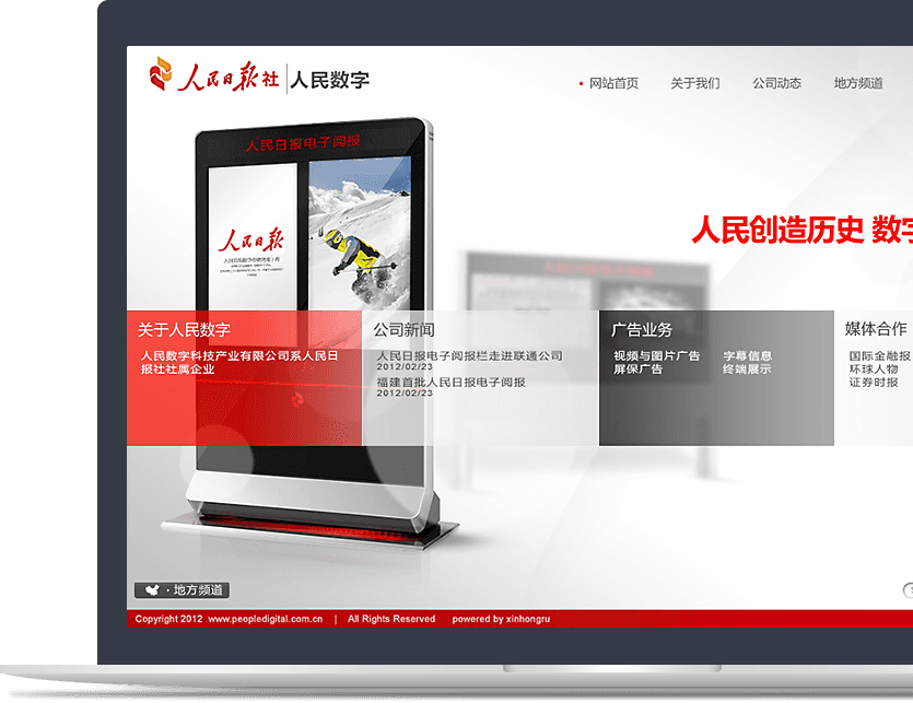 人民數(shù)字官網(wǎng)簡(jiǎn)潔清晰,互聯(lián)網(wǎng)形象與人民日?qǐng)?bào)社傳統(tǒng)形象保持一致,視覺(jué)識(shí)別度極高。