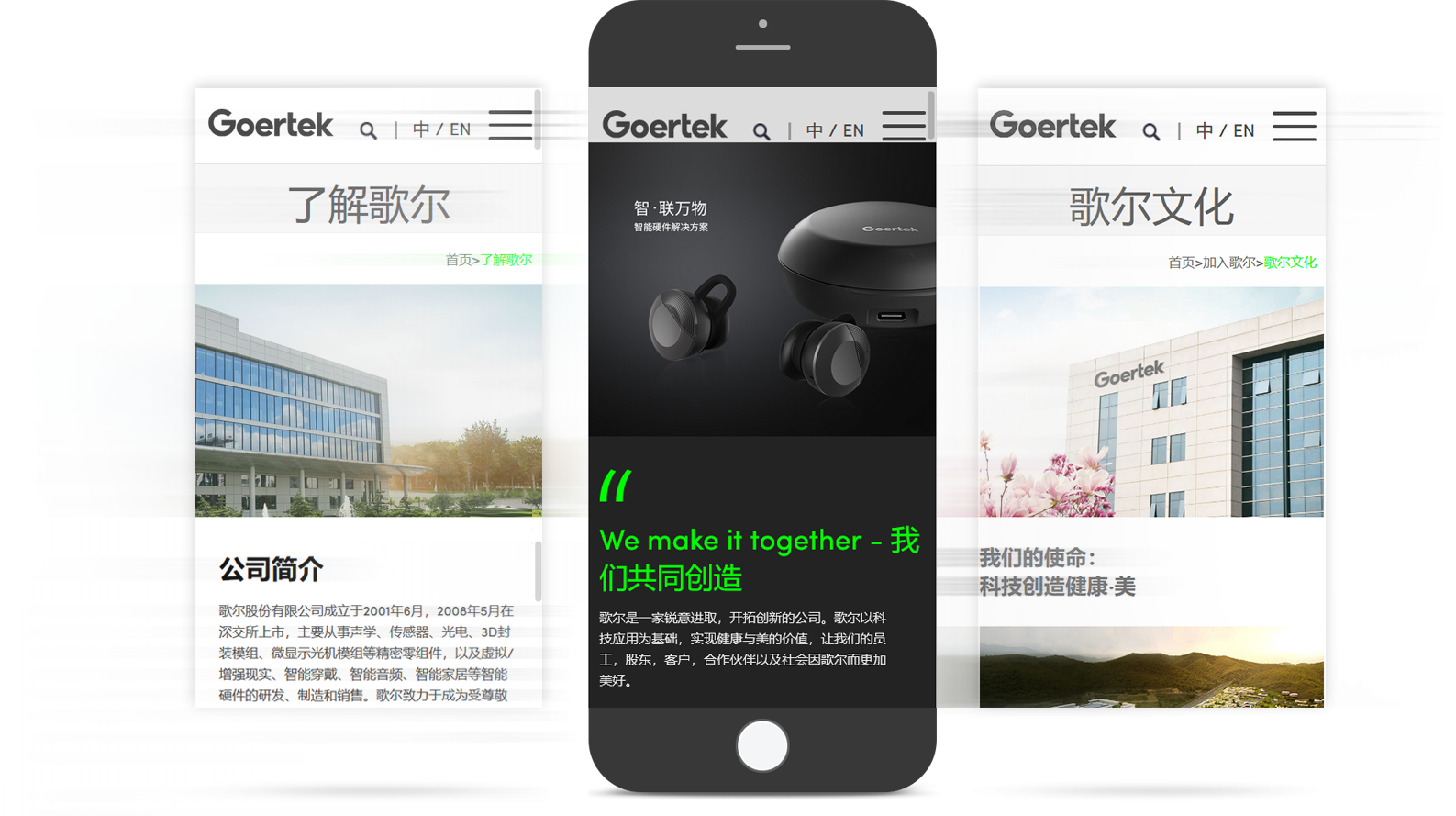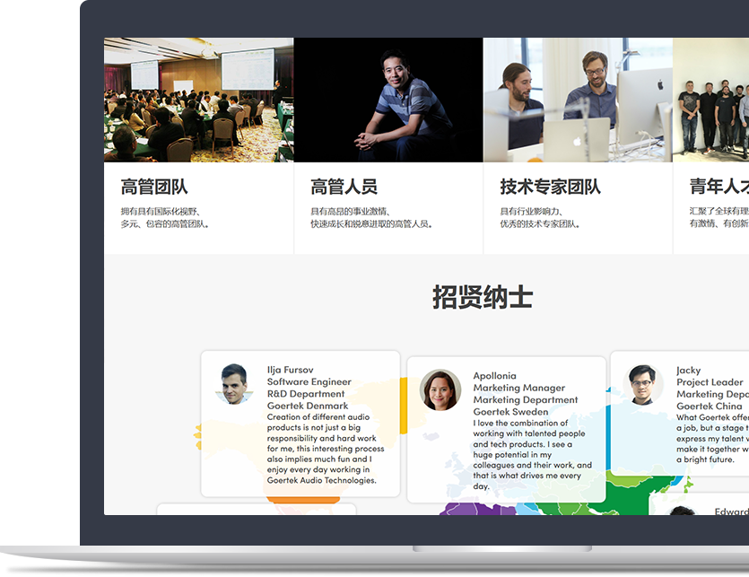 歌爾研發(fā)布局全球,在美國、日本、韓國、丹麥、北京、青島、深圳、上海、南京、臺灣等地分別設(shè)立了研發(fā)中心,以聲光電為主要技術(shù)方向,通過集成跨領(lǐng)域技術(shù)提供系統(tǒng)化整體解決方案。 我們一起創(chuàng)造 We make it together