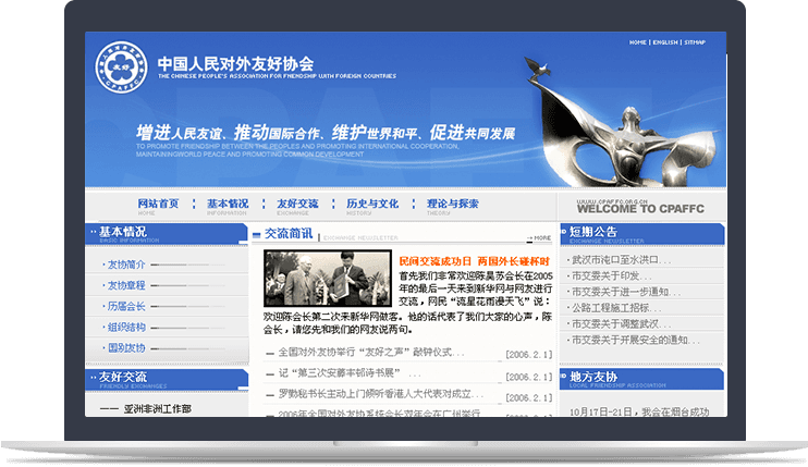 中國人民對外友好協(xié)會攜手新鴻儒,通過打造官網(wǎng),建立中外人民的交流窗口、互動專區(qū)和在線服務(wù)平臺