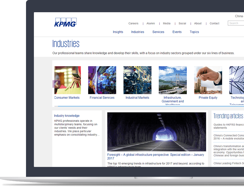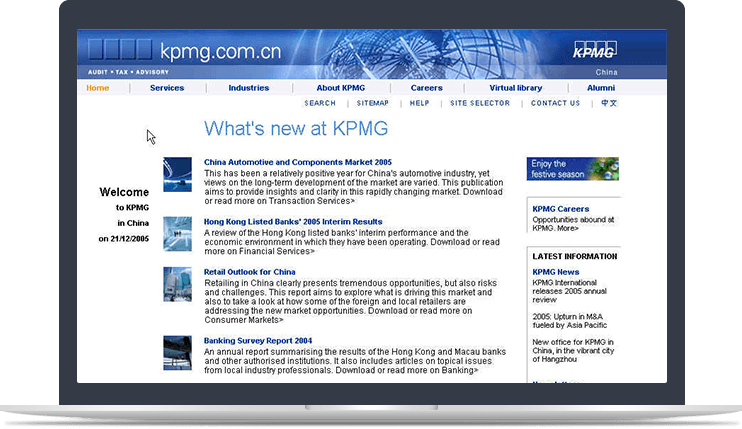 新鴻儒結(jié)合會(huì)計(jì)行業(yè)做事嚴(yán)謹(jǐn)、信息明了的特點(diǎn),為畢馬威打造以“信息”為主體的品牌官網(wǎng)