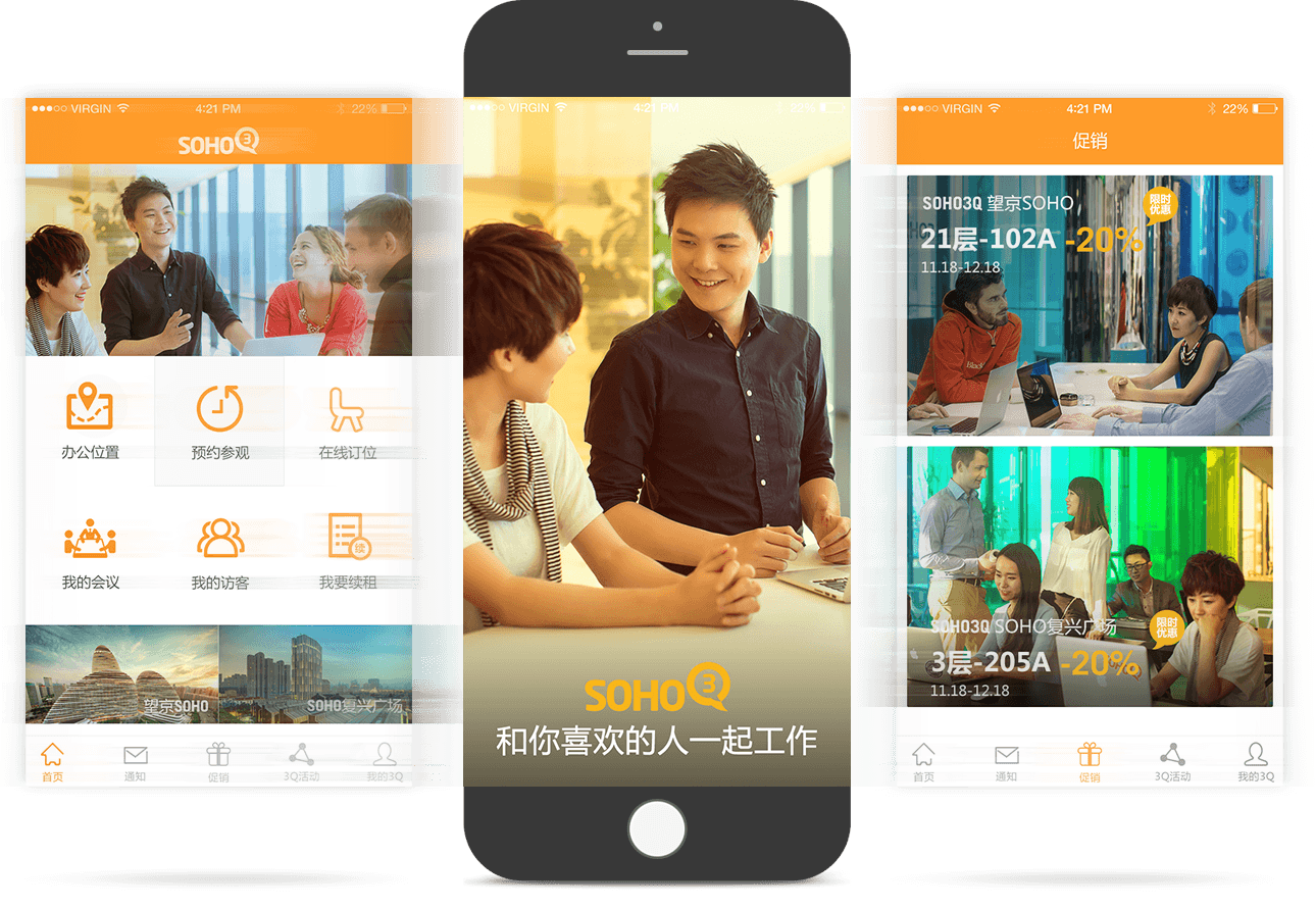 SOHO中國提供了一個(gè)現(xiàn)代化的共享辦公空間,并且面向短租、個(gè)性化租賃人群打造了自由、平等、多元的O2O電商服務(wù)平臺(tái),不同行業(yè)、不同背景的人可以一起在線交流、碰撞、分享,用戶登錄官網(wǎng)即可完成自由選房、訂房、簽約、付款等完整的租賃流程。
