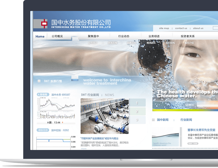 新鴻儒持續(xù)為國中控股、國中水務(wù)打造官方網(wǎng)站,在兼顧同一體系內(nèi)企業(yè)的視覺統(tǒng)一性的基礎(chǔ)上,通過不 同的表達(dá)方式塑造個性化的品牌官網(wǎng)
