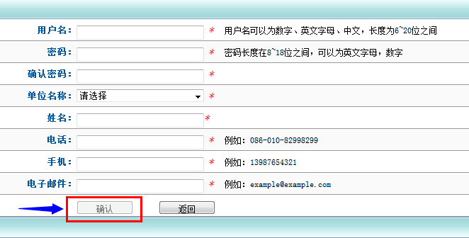 2、按要求填寫正確信息后,點擊確認(rèn)按鈕。
