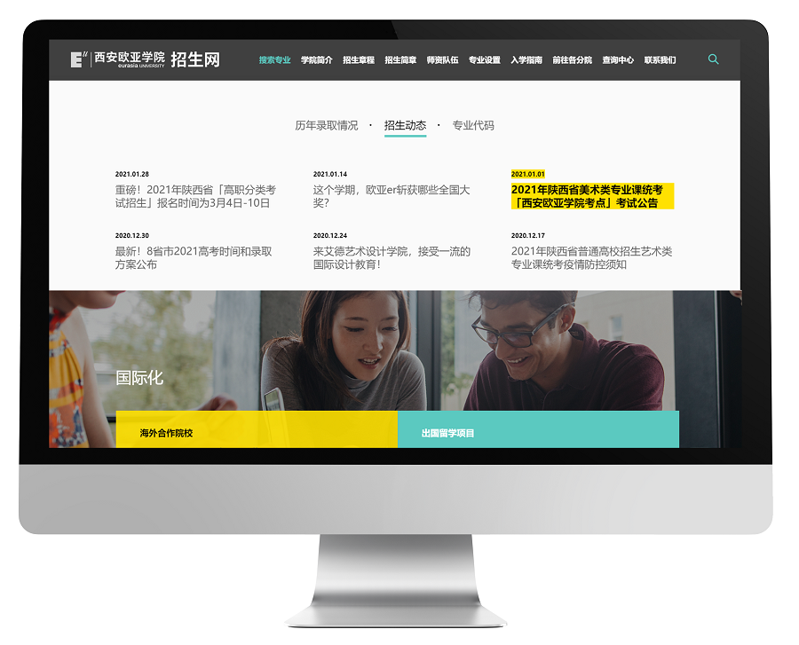本次項(xiàng)目主要目的是通過(guò)對(duì)招生網(wǎng)站的升級(jí),面對(duì)互聯(lián)網(wǎng)環(huán)境下成長(zhǎng)的全新一代準(zhǔn)大學(xué)生進(jìn)行品牌宣傳,提升西安歐亞學(xué)院品牌形象、擴(kuò)大品牌聲量、最終提升招生工作。新鴻儒服務(wù)西安歐亞學(xué)院已有11年,為數(shù)字化校園系統(tǒng)提供迭代更新、系統(tǒng)升級(jí)、各平臺(tái)系統(tǒng)的融合擴(kuò)展工作,得到了院方各領(lǐng)導(dǎo)的高度認(rèn)可與支持。