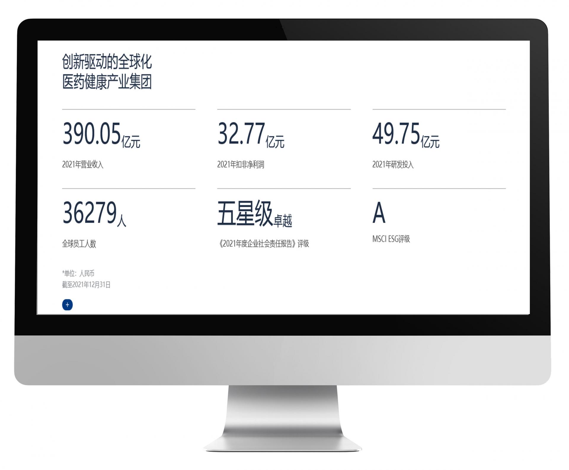 網(wǎng)站的升級重點在于內(nèi)容的呈現(xiàn),有效內(nèi)容就是客戶能感知或接收的內(nèi)容,太多的文字會讓訪客閱讀不便,可以提煉成具體的數(shù)字,更加真實可信。針對這一特點,我們在首頁中融合了復星醫(yī)藥集團的實力和業(yè)績,通過具體數(shù)字跳動的方式提煉出來,讓用戶第一時間了解到復星醫(yī)藥集團的實力和遠大的前景。