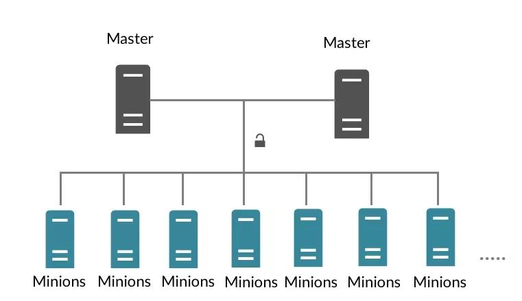 從部署結(jié)構(gòu)上看,SaltStack的在部署上可以分為master和minion兩個部分,其中master相當于統(tǒng)領(lǐng)所有機器的總管,而minion則是部署在被管理機器上面的agent進程,master通過網(wǎng)絡(luò)將配置管理相關(guān)的操作下發(fā)到minion,由minion在對應(yīng)機器的本地執(zhí)行。典型的部署例子如下圖所示: